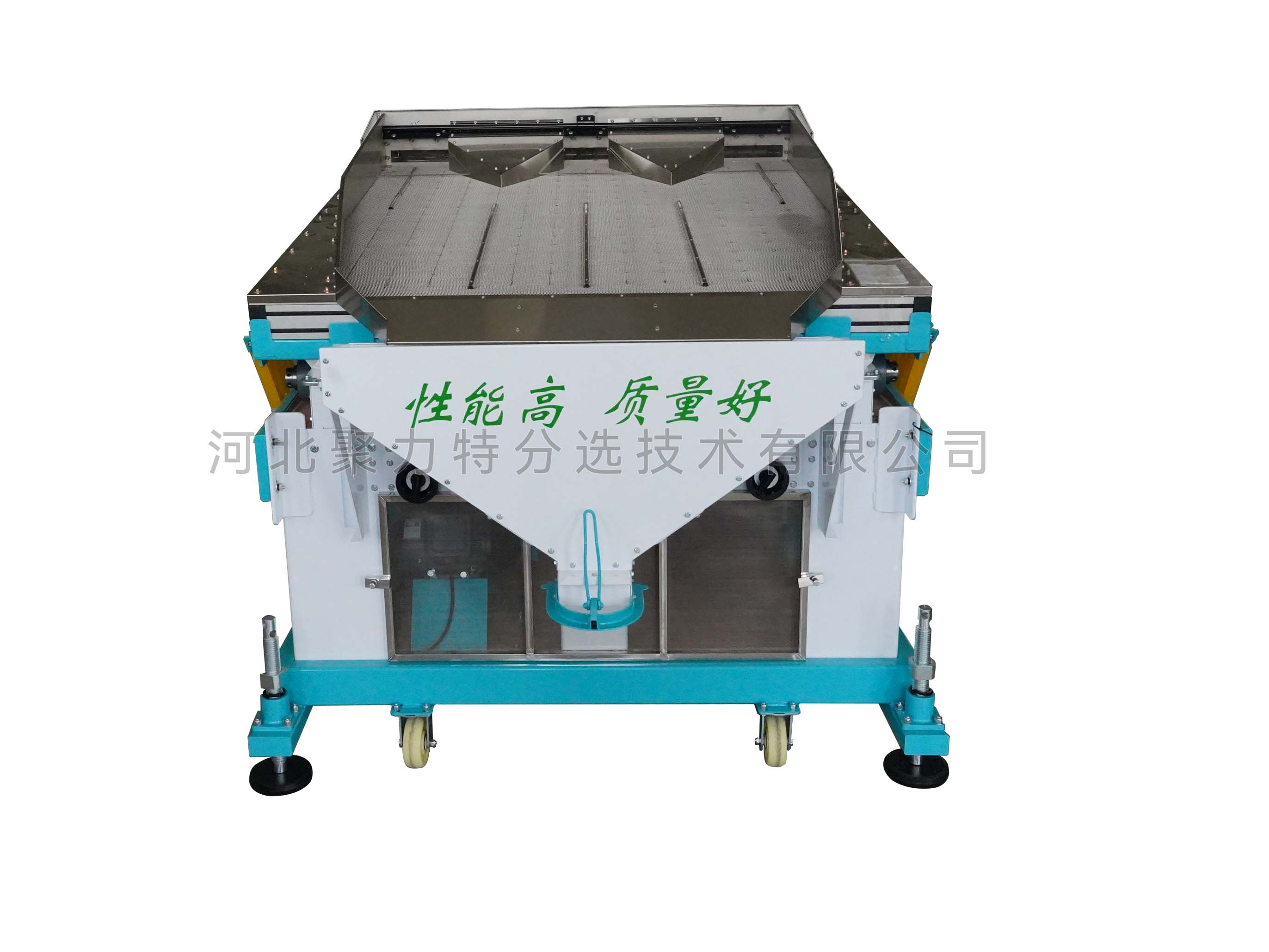 根據(jù)物料中作物和石子的比重差異,通過(guò)調(diào)整風(fēng)壓、振幅等參數(shù),使比重較大的石子沉到底部貼著篩面由低向高運(yùn)動(dòng),比重較小的作物懸浮在表面由高向低運(yùn)動(dòng),從而達(dá)到分離的目的。