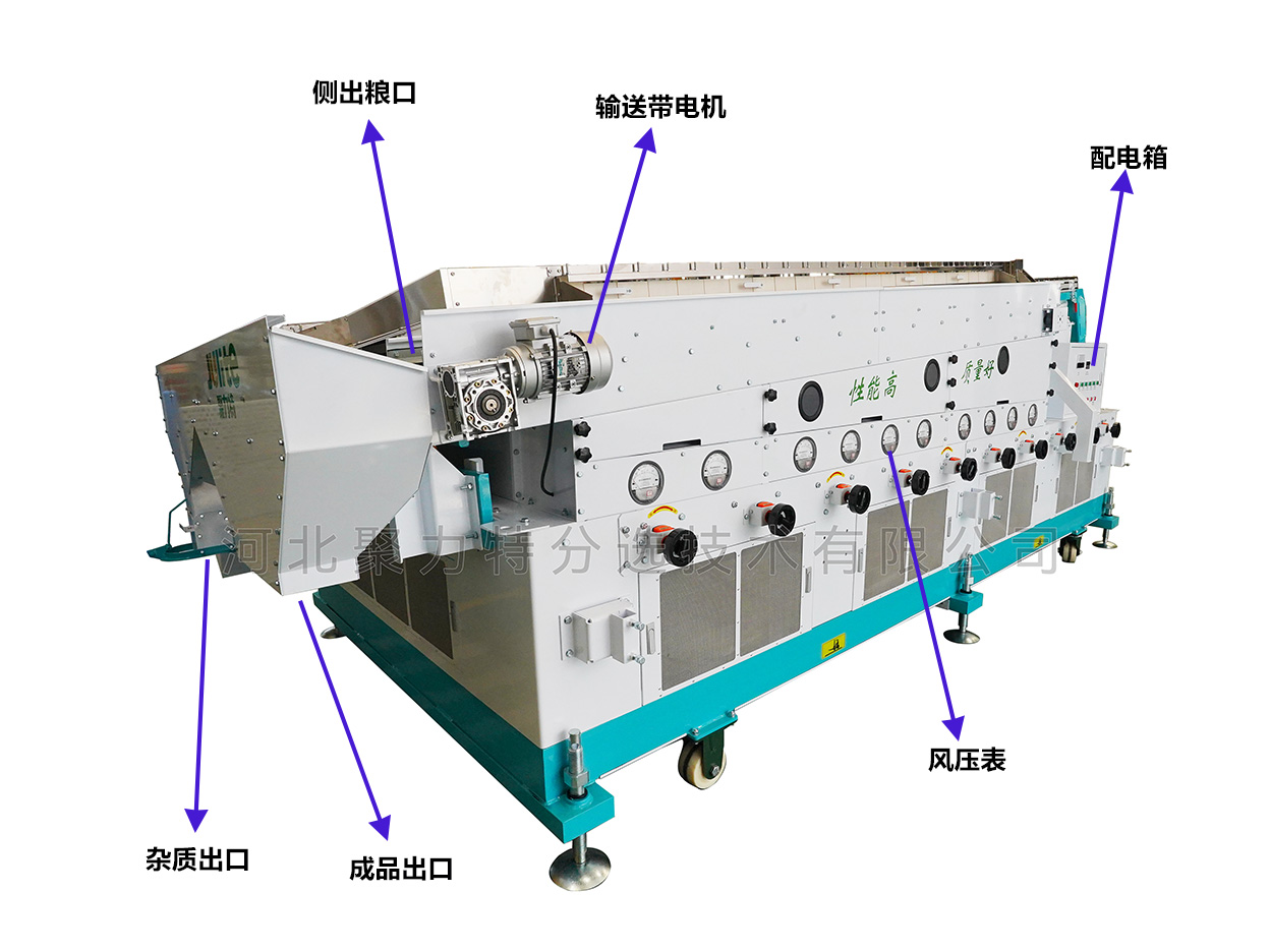 2、凈度高:臺面振動和勻風結(jié)構(gòu)經(jīng)過嚴密設(shè)計,出糧口精細分糧,大大提高了篩選凈度;