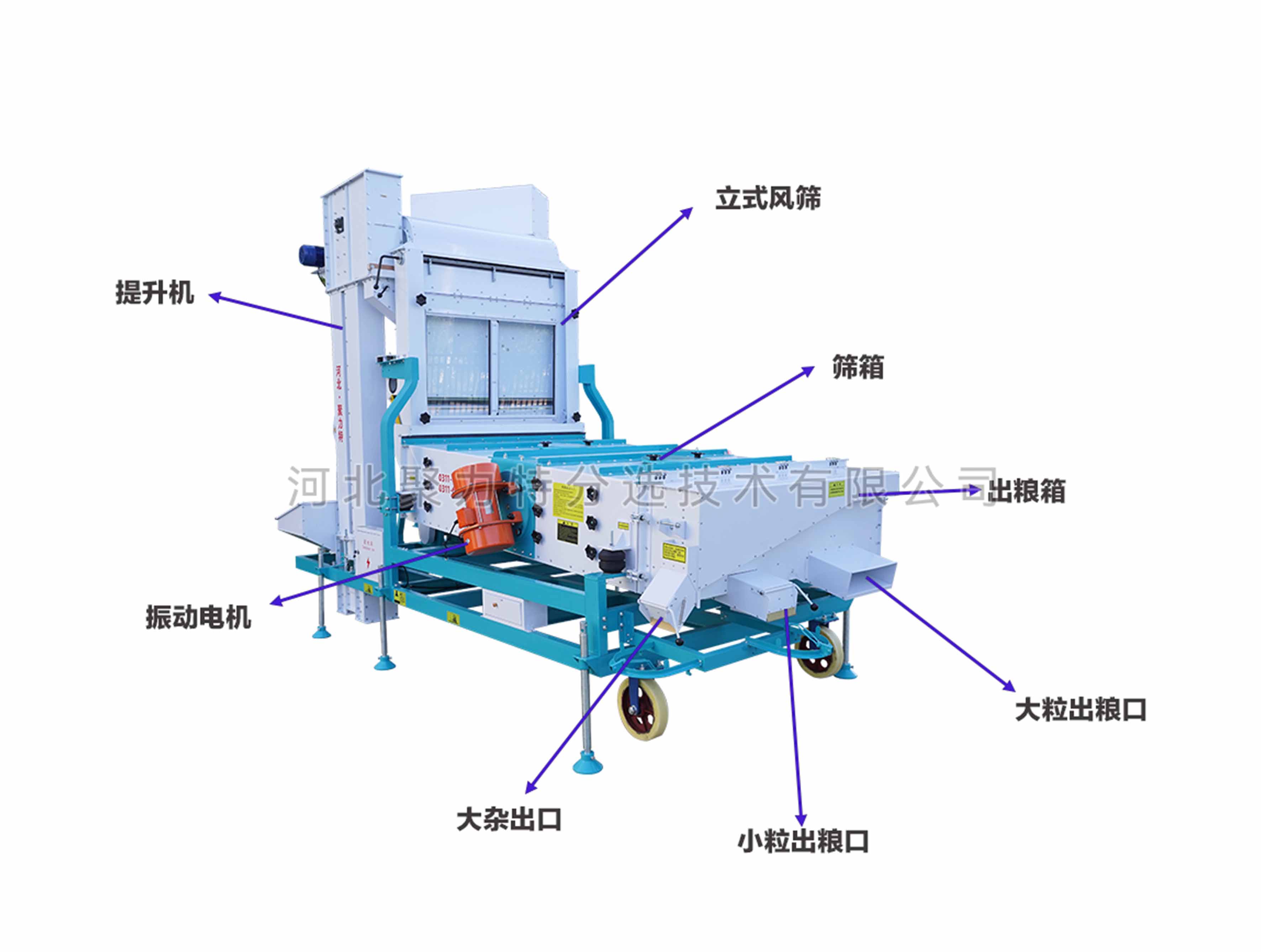 5、出糧口可更換: 主出糧口標(biāo)配為無擋板大口,便于后序提升機(jī)的連接,并可根據(jù)實(shí)際使用需求選配裝有擋板的小出糧口。